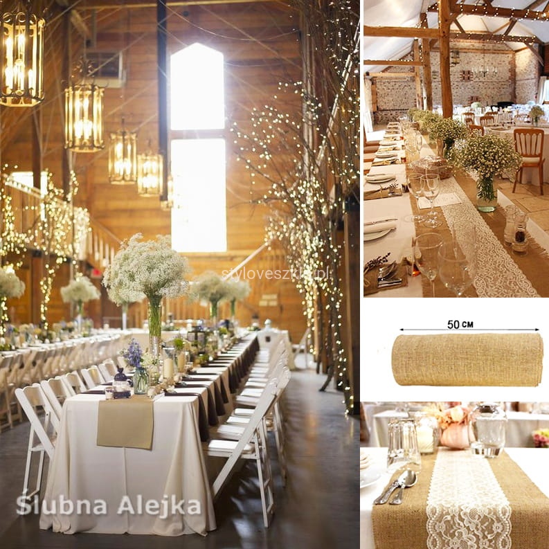 Samodzielne bieżniki przepięknie się prezentują na drewnianych stołach, dodają wystrojowi delikatności oraz domowego ciepła. O ile w przypadku rozkładania obrusów ciężko sobie pozwolić na puszczenie wodzy fantazji, to już wybierając bieżniki możemy odrobinę poszaleć z aranżacjami. Muślin, bo to właśnie z tego materiału zostały wykonane bieżniki cieszące się w naszym sklepie największą popularnością, swoją elastycznością umożliwia ułożenie dekoracji w tradycyjnej formie długiego pasa lub uformowania w artystycznie niestaranne fałdy i ułożenia pomiędzy szklanymi paterami. W duże zapasy świątecznego uroku zostały też wyposażone bieżniki jutowe zdobione ślicznymi koronkami, które tworzą spójną całość z rustykalnymi dodatkami i ozdobnymi świecami.