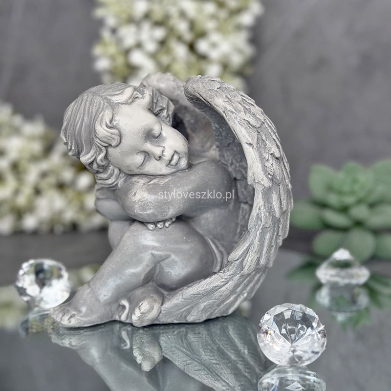 Aniołek Śpiący Figurka Komunijna Szary 12cm x 12 cm