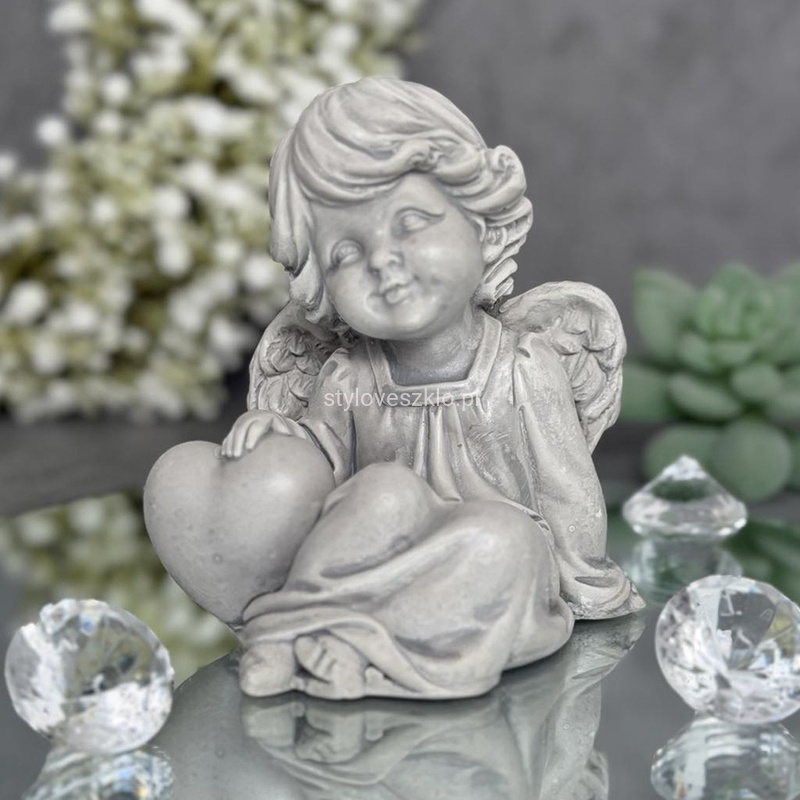 Aniołek z Sercem Figurka Komunijna Szary 12cm