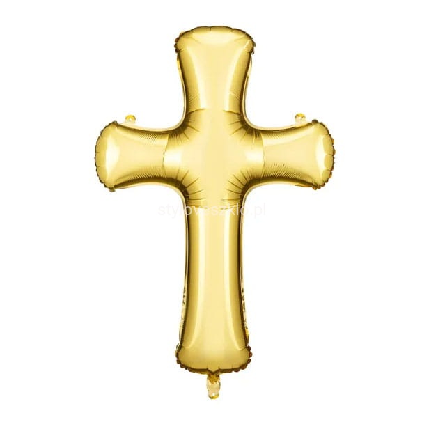 Balon foliowy Krzyż w kolorze złotym, wymiary przed napompowaniem ok. 103.5 x 74.5 cm (41 x 29''), wymiary po napompowaniu ok. 63 x 91 cm (25 x 36''). Do napompowania powietrzem i helem. Zestaw zawiera słomkę.