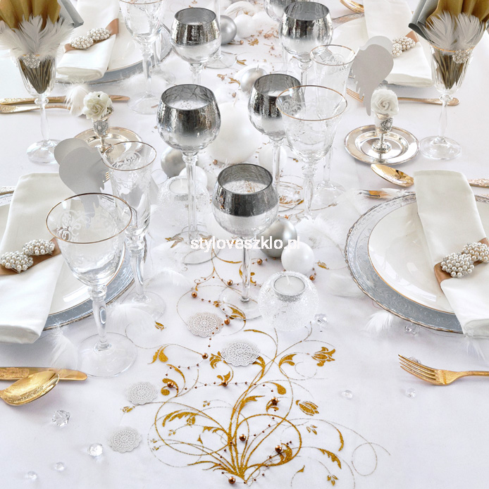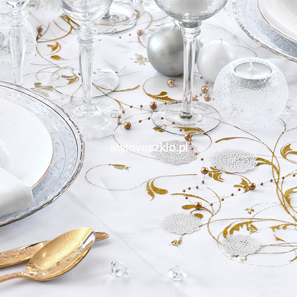 Bieżnik złoty jest na tyle uniwersalną ozdobą, że wybór między jednym wzorem a drugim nie ma większego znaczenia. Oba znakomicie sprawdzą się szczególnie podczas uroczystych przyjęć i podniosłych chwil. Ze względu na kolorystykę, bieżnik złoty idealnie odda charakter świątecznych kolacji i noworocznych imprez. Jeśli dodamy do nakrycia złote dodatki lub pozłacane talerze - wzmocni całą dekorację i będzie stanowić jej nieodzowną klamrę.