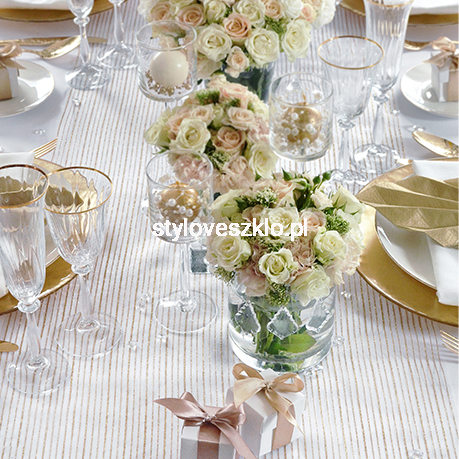 Bieżnik z nadrukiem dobieramy do całego stylu nakrycia, do okazji oraz do kolorystyki panującej w pozostałych dekoracjach. Drobny nadruk właściwie spełnia rolę zdobienia na obrusie, na którym leży, ponieważ materiał bazowy jest przezroczysty. Pięknie prezentuje się na eleganckich przyjęciach, weselach, rocznicach, a także świątecznych kolacjach.