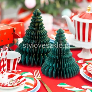 Piękna ozdoba świątecznego stołu Bombka papierowa honeycomb Choinka w kolorze butelkowej zieleni.