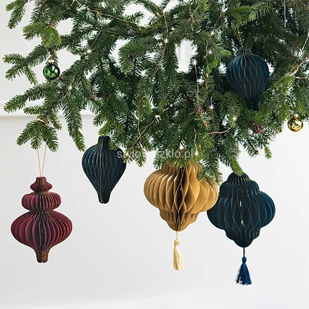 Piękna ozdoba świątecznego drzewka Bombka papierowa honeycomb Latarnia w kolorze granatowym.