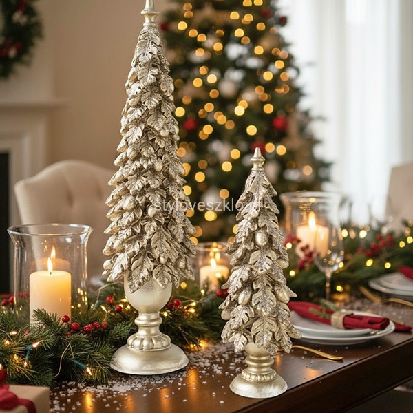 Choinka glamour może uzupełniać większą aranżację świąteczną, szczególnie jeśli tak samo jak ona reprezentuje styl ekologiczny lub rustykalny. Znakomicie pasuje również do dużych stroików i przestrzennych świeczników. Można ją wówczas osadzić wśród gałązek świerkowych, bombek i innych świątecznych elementów dekoracyjnych.