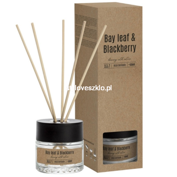 Dyfuzor wyróżnia się ekologicznym opakowaniem oraz zestawem rattanowych patyczków, które stopniowo i równomiernie uwalniają zapach. Zanurzone w wysokiej jakości olejku zapachowym, zapewniają trwały efekt nawet do 7 tygodni, wypełniając przestrzeń świeżością i naturalnym aromatem. Połączenie jeżyny i liścia laurowego tworzy wyjątkowy, zmysłowy aromat o roślinno-owocowym charakterze. To zapach, który łączy subtelną słodycz owoców z zieloną świeżością natury, wprowadzając do wnętrza spokój, czystość i harmonię.