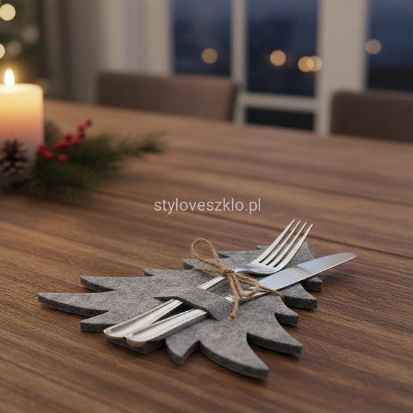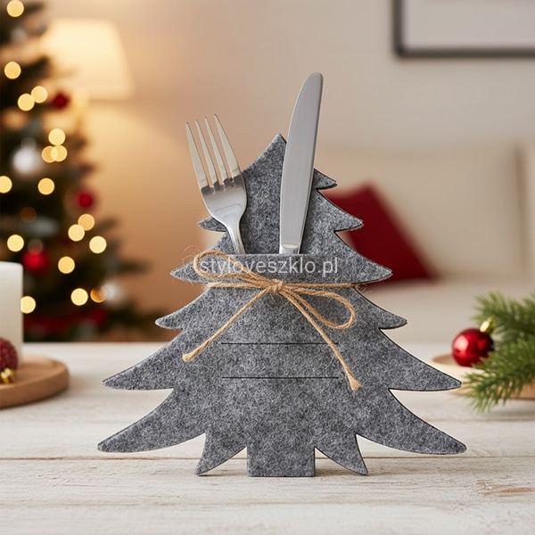 Etui Filcowe na Sztućce Choinka Szara 4 szt.