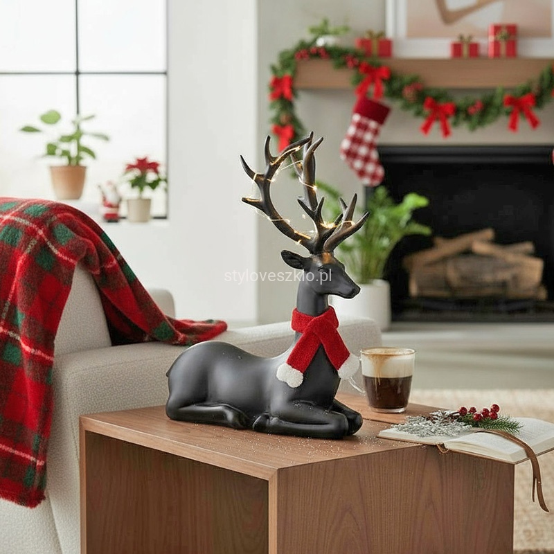 Figurka Świąteczna Renifer Czarny Leżący 20 cm