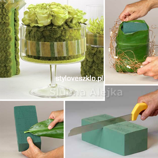 Gąbka florystyczna jest bardzo praktycznym dodatkiem do wszelkiego rodzaju kompozycji florystycznych z żywych kwiatów. Sprawdza się wyjątkowo dobrze w restauracjach i hotelach, ponieważ w wersji mokrej utrzymuje wilgoć bardzo długo i pozwala cieszyć się pięknem kwiatów przez dłuższy czas niż zwykle. Gąbkę florystyczną można dociąć do dowolnego kształtu wazonu, misy, czy szklanego pojemnika.