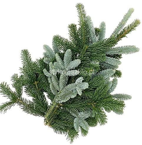 Gałęzie ze świeżo ciętej szlachetnej Jodły Nobilis w kolorze zielonym. Jest to element florystyczny, który zdobi dekoracje świąteczne. Bardzo łatwo zastosować gałązkę jodły w kompozycjach florystycznych, ułożyć z nich całkiem nowy stroik lub wianek. Dodatkowo można dobrać do niego odpowiednie akcesoria z naszej oferty, aby dopełnić aranżację.