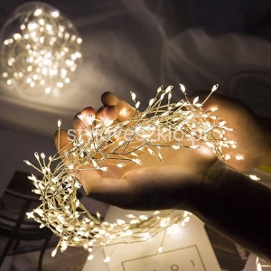 Lampki drucik świetlny Ryż to maleńkie lampki osadzone na cienkim druciku z bocznymi drucikami na których również są lampki. Zasilane na prąd. Lampki MicroLED mają dość długi czas palenia. Ze względu na wygodę w użytkowaniu i brak konieczności podłączania ich do prądu - zyskują na popularności każdego dnia. Szczególnie praktyczne zastosowanie mają w hotelach i restauracjach. Wystarczy wybrać miejsce do umieszczenia lampek - drucika świetlnego, nie oglądając się na logistyką konieczną w przypadku lampek podłączanych do prądu.