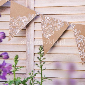 Girlanda kraftowe flagietki z delikatnym koronkowym wzorem. Idealna do dekoracji sali lub słodkiego barku.