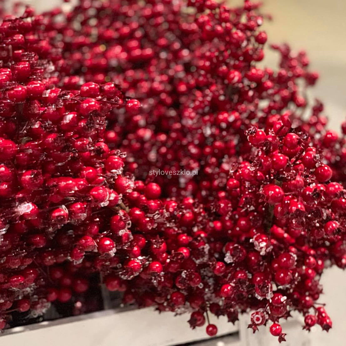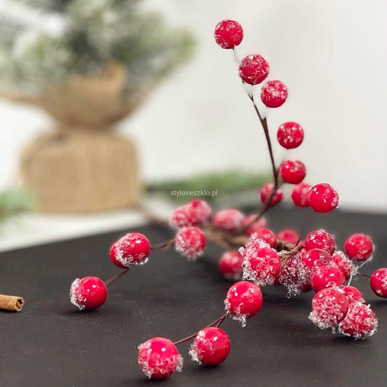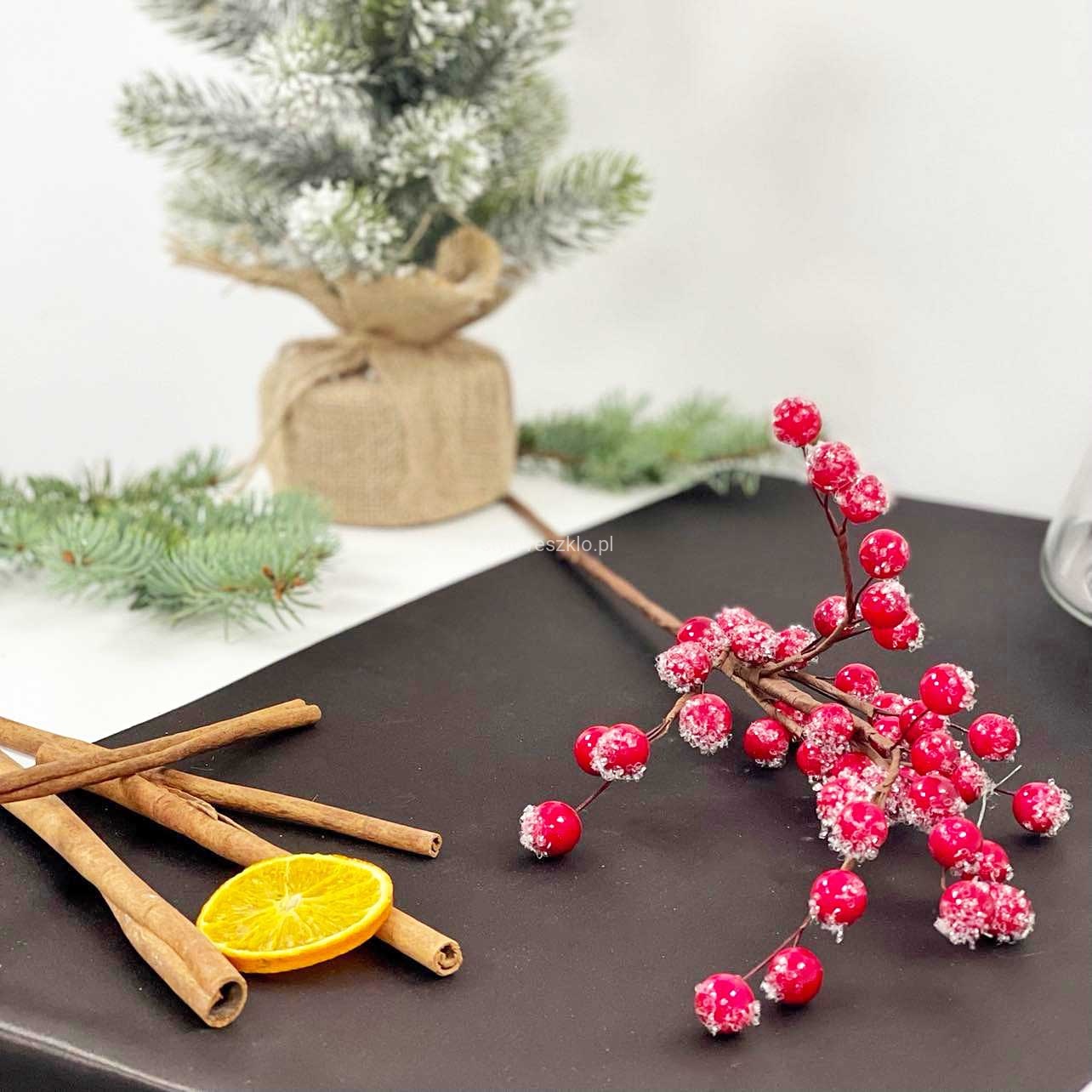 Gałązka głogu to delikatna ozdoba wypełniona czerwonymi owocami. Wspaniale prezentuje się jako dodatek do kompozycji florystycznych w okresie Bożego Narodzenia. Ze względu na mrożoną stylizację, gałązka głogu wspaniale podkreśli zimowe aranżacje w naszych restauracjach, hotelach i kawiarniach. Pięknie będzie się prezentować również w szklanych wazonach z lampkami ledowymi.