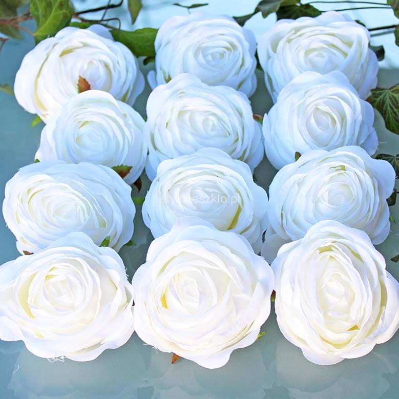 Główki Róż Dekoracyjnych Białe 12szt.