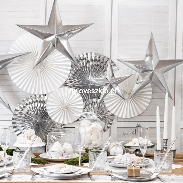 Gwiazda papierowa to wspaniała dekoracja w czasie Świąt Bożego Narodzenia. Możemy zawiesić ją na żyłce nad stołami lub wpleść w większą dekorację. Jeśli organizujemy bale karnawałowe, możemy również kilkanaście sztuk umieścić nad parkietem, tworząc przestrzenną aranżację zimową. Oprawa świąteczna jest wymagająca, a w naszej ofercie odnajdziecie Państwo dodatki i ozdoby, nawiązujące do tego okresu w każdej kategorii.