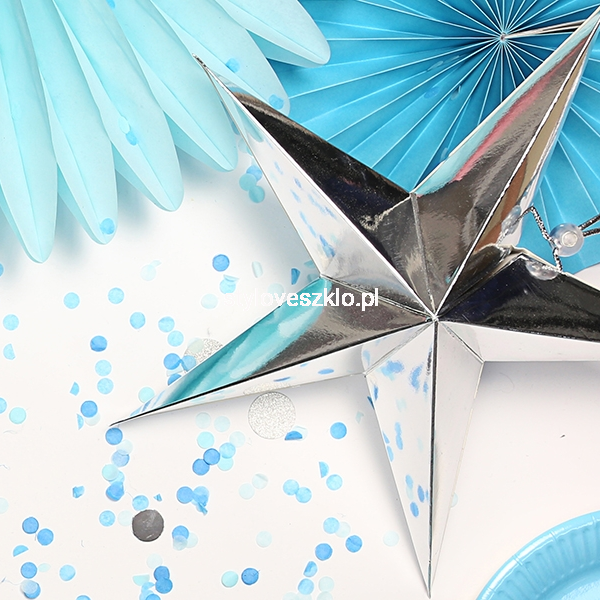Gwiazda papierowa pięcioramienna została wykonana z papieru lustrzanego. W naszej ofercie odnajdziecie Państwo trzy różne rozmiary gwiazdy papierowej. Każdą z nich można zastosować jako dodatek do świątecznej aranżacji pomieszczenia. Okazałe kształty sprawiają, że jest to element wyróżniający się, ale także w szybki i łatwy sposób stylizujący otoczenie.
