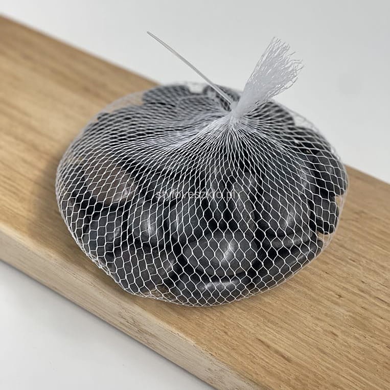 Kamienie Dekoracyjne Otoczaki z Połyskiem w Siatce Czarne 1kg