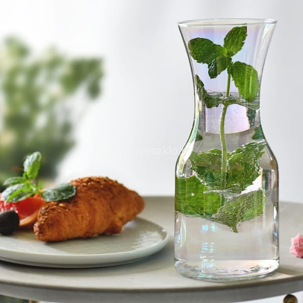 Karafka jest ekskluzywnym dodatkiem na stole. Zakupiona w większych ilościach będzie stanowić harmonijną całość jako praktyczna dekoracja. Jej design wspaniale koresponduje z tradycyjnym, jak i nowoczesnym stylem zastawy. Do karafki nalewamy napoje i w razie potrzeby możemy wsunąć w nią również trawkę.