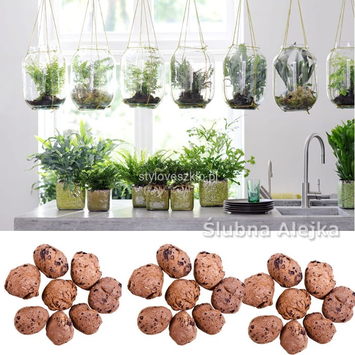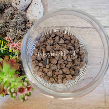 Keramzyt to nie tylko uzupełnienie. Może również stanowić oś dekoracji. Wówczas do szklanego wazonu możemy nasypać kolejne warstwy keramzytu i przepleść go lampkami LED, tworząc wyjątkowy i oryginalny dodatek. Wszystko to w naturalnej kolorystyce, korespondującej z całą przestrzenią wokół dekoracji.