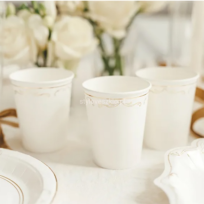Kubeczki Białe ze Złotym Ornamentem Ślub Komunia 6 szt.