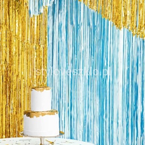 Kurtyna Party to przepiękna, lśniąca i niedroga dekoracja, którą można wykorzystać do dekoracji dowolnie wybranych miejsc. Sprawdzi się doskonale jako forma wisząca do dekoracji słodkiego bufetu, czy dekoracji centralnej za Młodą Parą . Rozmieszczenie kilku dekoracji jest dowolne, ale najbardziej popularne jest zawieszenie ich w podobnych odcieniach kolorystycznych pod sufitem zarówno w sali weselnej, jak i pod namiotem ogrodowym, czy w altanie. Do całości warto dodać kolorystycznie dobrane balony.