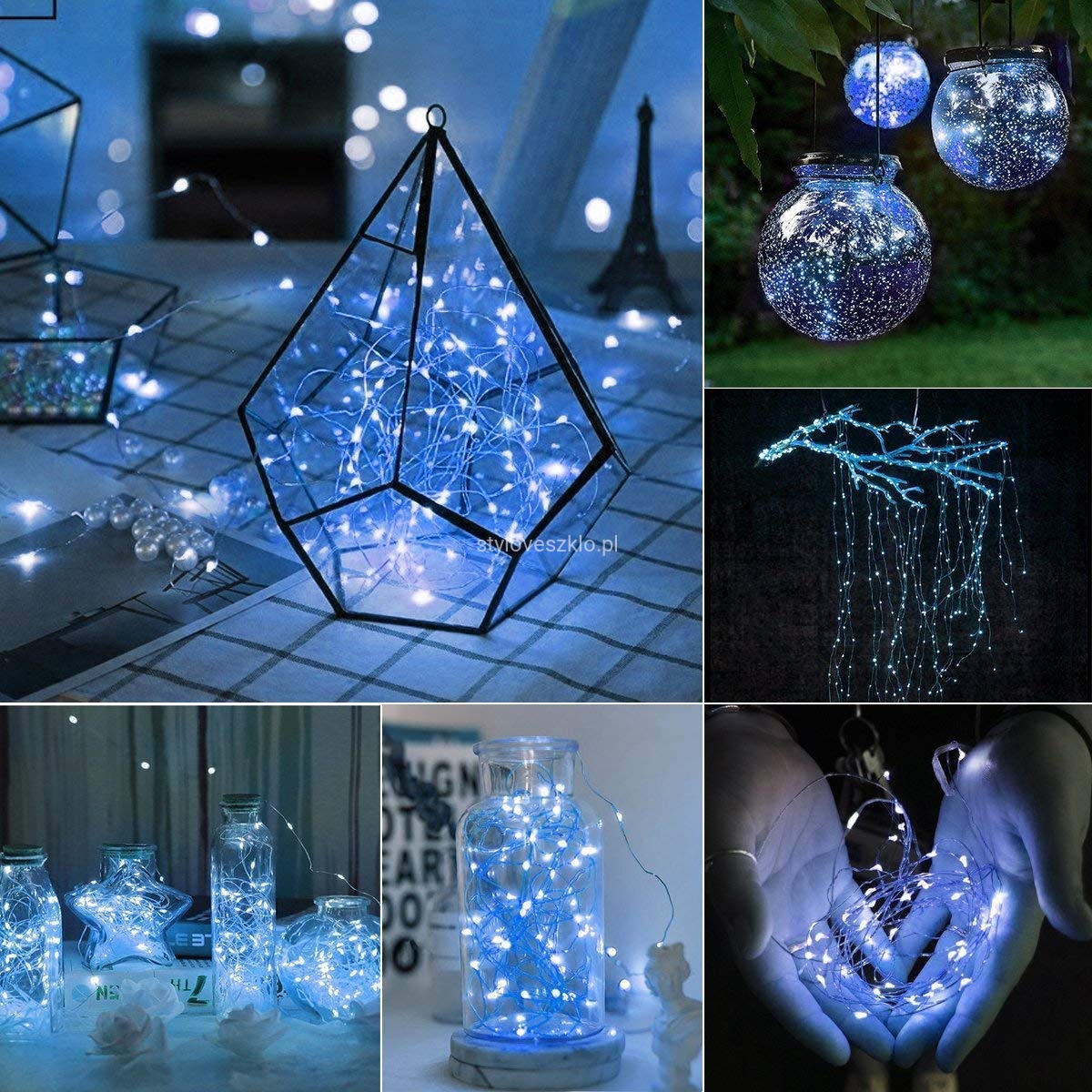 Lampki drucik świetlny można umieścić na stołach pośród zastawy razem z inną delikatną dekoracją, ale można też włożyć je do wysokiego, szklanego naczynia, tworząc w ten sposób stroik. Dodatkowo możemy je wplatać pomiędzy elementy aranżacyjne w dowolnym miejscu, podkręcając efekt końcowy dodatkowym oświetleniem.