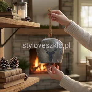 Dzwonek metalowy z reniferem jest ozdobą, która fantastycznie komponuje się z kominkiem, wiankiem bożonarodzeniowym i naturalnym drewnem. Z uwagi na kolorystykę znajdzie swoje miejsce w każdej stylizacji świątecznej. W towarzystwie innych zawieszek, pachnących gałęzi świerku i choinki wspaniale zdobi wnętrze domu lub restauracji w czasie świątecznych kolacji.