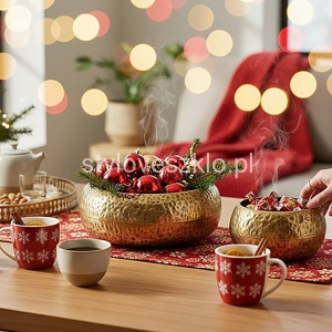 Misy Złote można zastosować z powodzeniem wkładając do nich niskie kwiaty cięte, gałązki lub mech. Polecamy w tym przypadku kwiaty i gałęzie egzotyczne. Wszystko to razem stworzy nastrojową dekorację dopasowaną do charakteru przyjęcia.