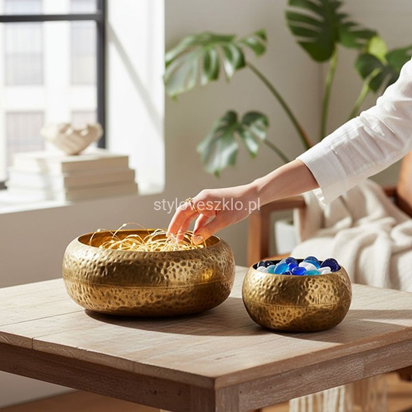Komplet Mis Dekoracyjnych Metalowych Złotych to dekoracja dla osób ceniących klasykę i elegancję. Swoją renomę zawdzięczają eleganckiemu designowi na kształt niskich okrągłych form z delikatnie wytłaczaną powierzchnią. Misy złote odpowiednio zaaranżowane potrafią stworzyć we wnętrzu wspaniałą atmosferę. Zakup tego kompletu mis pozwoli wykorzystać je do dekoracji nawet podczas dużych przyjęć i uroczystości.