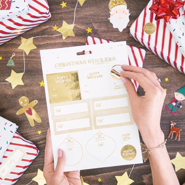 Naklejki Dekoracyjne do Prezentów Christmas Złoty Mix
