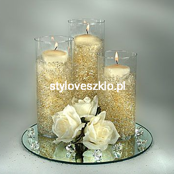 Podstawka lustrzana może stanowić podłoże dla świec, budując w ten sposób nietuzinkowy świecznik. Na powierzchnię lustra można również nasypać piasek dekoracyjny lub ułożyć na niej girlandy kryształowe, dopełniając ozdobę dodatkowymi elementami. Podstawka lustrzana to także podłoże dla innych naczyń lub słodkości w Candy Barze. To wspaniała ozdoba o praktycznym zastosowaniu.