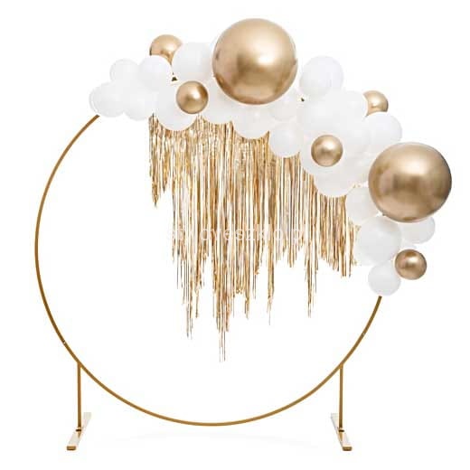 Stojak na tło to bardzo efektowna i łatwa w montażu dekoracja sali, która powinna znaleźć się na każdej ważnej uroczystości. Ustawiona w centralnym miejscu sali tanecznej, w ogrodzie lub na tarasie, gdzie odbywa się przyjęcie plenerowe stworzy niesamowitą atmosferę. Komplet dekoracji balonowych, czy florystycznych zawieszonych na obręczy stworzy niezwykle efektowną aranżację. Stojak na tło w połączeniu z balonami i dekoracjami wiszącymi można dodatkowo oświetlić kolorowym, punktowym światłem, tworząc w ten sposób wielowymiarową przestrzeń. Stojak na tło można wykorzystać podczas kilku imprez, a potem złożyć i schować do następnej uroczystości.