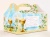 Ozdobne pudełko na ciasto komunijne, z nadrukiem złotego kielicha i kwitnących kwiatków.