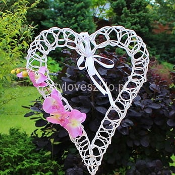 Serce wiklinowe na stojaku to ozdoba ślubna najczęściej stawiana przy ołtarzu w kościele lub pod namiotem, jeśli ślub odbywa się w plenerze. Jeśli zakupimy kilka serc wiklinowych można je powiesić jako dekorację sali weselnej. Wszystko to razem stworzy niepowtarzalny klimat, który na długo zapadnie w pamięć gościom weselnym. Serce można również potraktować jako bazę dekoracyjną do ozdoby kwiatami, mchem czy światełkami microled.