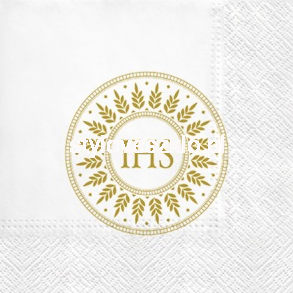 Serwetki komunijne 3 warstwowe ze złotym emblematem IHS i delikatnymi ornamentami.