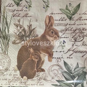 Serwetki Papierowe Wielkanocne Zajączki Brązowe 33x33cm