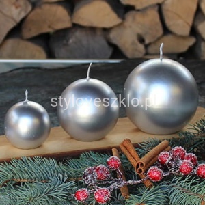Świece kule metaliczne stawiamy na podstawce o większych gabarytach, jednak ze względu na metaliczny charakter, będą pasowały do lustrzanych podstawek i eleganckich, szklanych świeczników. Do tak przygotowanej bazy dodajemy gałązki świerkowe, girlandy kryształowe, figurki, susz egzotyczny lub inne aplikacje i w ten sposób w ciągu kilku minut powstaje piękna i jedyna w swoim rodzaju dekoracja okolicznościowa.