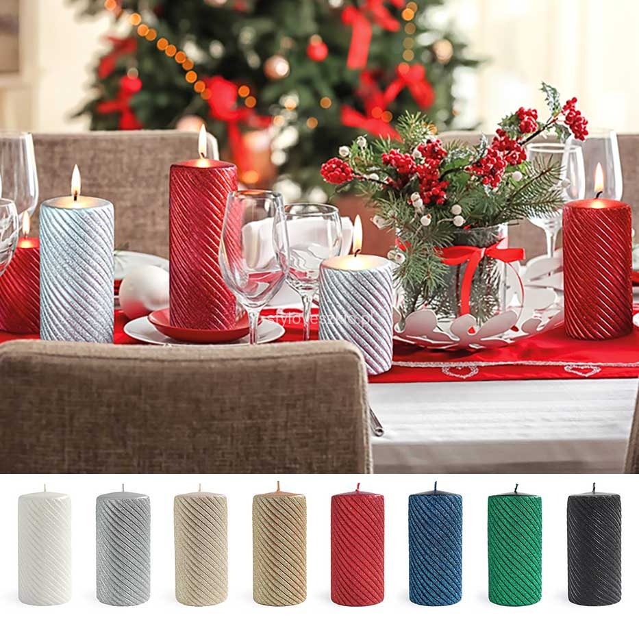 Świeca ozdobna, pieńkowa Caroline to bardzo elegancka świeca w stylu glamour. Zdobiona drobinami brokatu. Zwróci uwagę na każdym eleganckim stole. Przepiękne kolory do wyboru dodadzą z pewnością dodadzą przytulnego świątecznego klimatu. W salonie, sypialni, czy podczas przyjęcia – świece ozdobne sprawdzą się w każdej z tych aranżacji. W połączeniu z dostępnymi w naszym sklepie szklanymi lampionami oraz dekoracyjnym piaskiem, stworzy prostą, ale zarazem bardzo ubogacającą wnętrze dekorację.