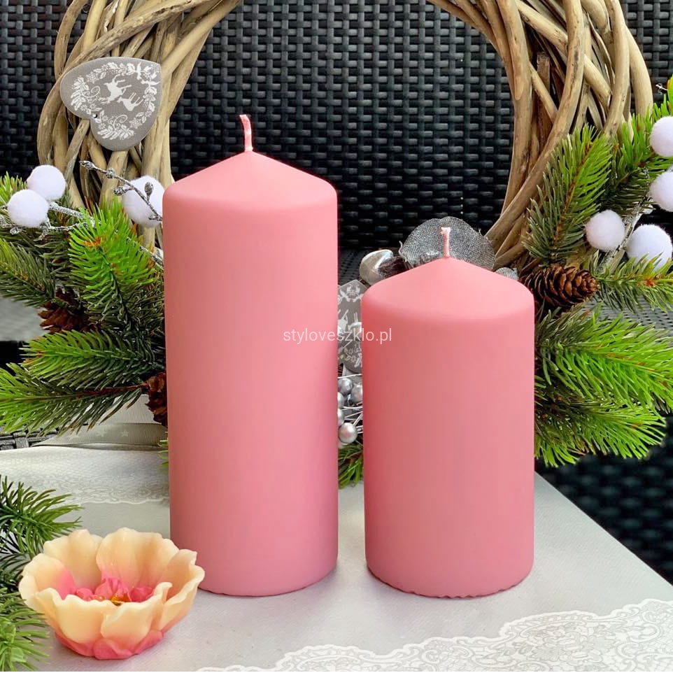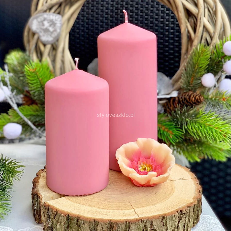 Świeca Ozdobna Pieńkowa Classic Jasnoróżowa 12m Φ 8cm