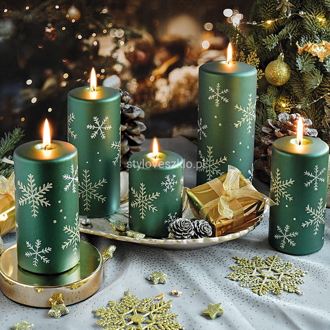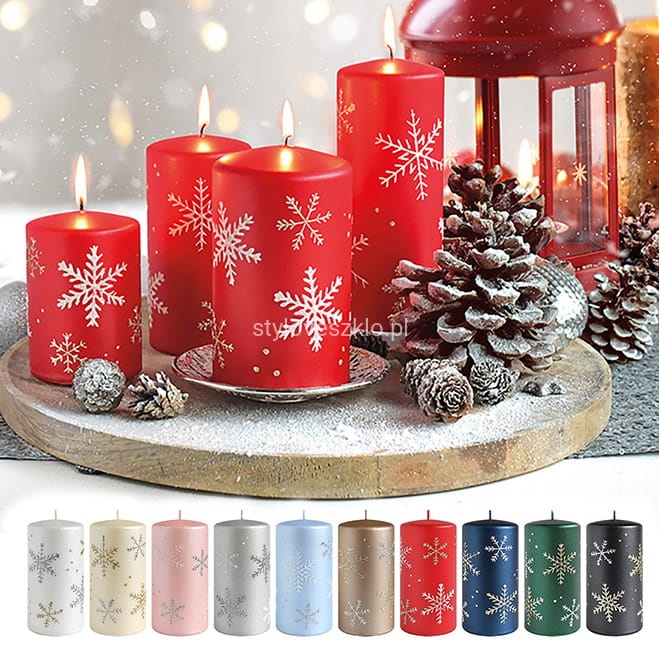 Świeca ozdobna, pieńkowa Frost to świeca gładka zdobiona świątecznymi brokatowymi śnieżkami. Zwróci uwagę na każdym eleganckim stole. Przepiękne kolory do wyboru dodadzą z pewnością dodadzą przytulnego świątecznego klimatu. W salonie, sypialni, czy podczas przyjęcia – świece ozdobne sprawdzą się w każdej z tych aranżacji. W połączeniu z dostępnymi w naszym sklepie szklanymi lampionami oraz dekoracyjnym piaskiem, stworzy prostą, ale zarazem bardzo ubogacającą wnętrze dekorację.
