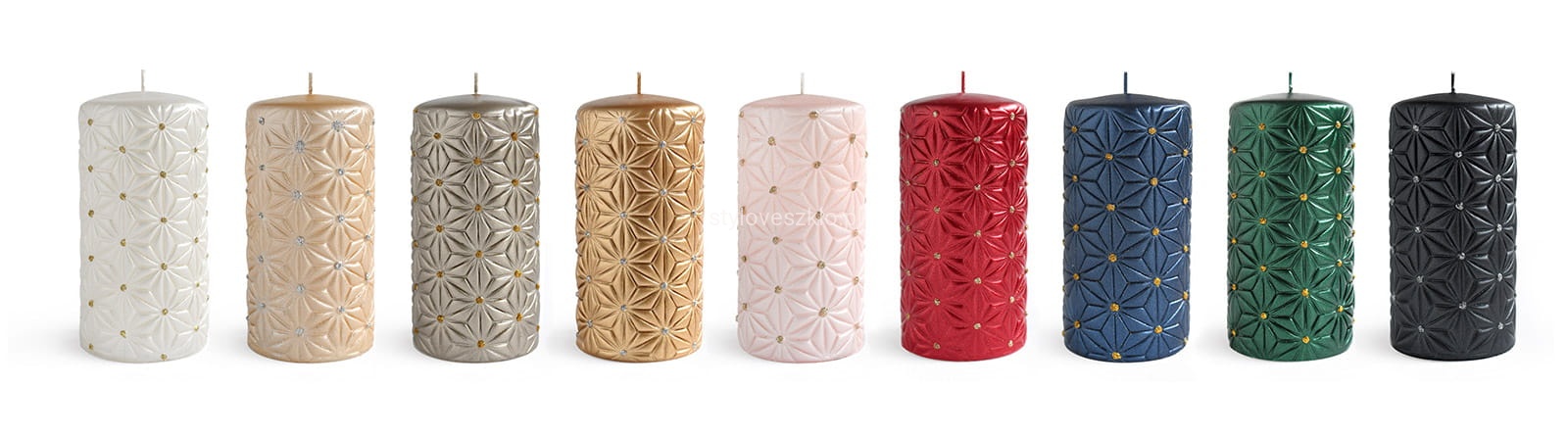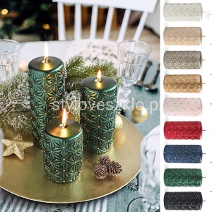 Świeca ozdobna, pieńkowa Ravenna to świeca z wytłaczanym wzorem, zdobiona złotymi cekinkami. Zwróci uwagę na każdym eleganckim stole. Przepiękne kolory do wyboru dodadzą z pewnością dodadzą przytulnego świątecznego klimatu. W salonie, sypialni, czy podczas przyjęcia – świece ozdobne sprawdzą się w każdej z tych aranżacji. W połączeniu z dostępnymi w naszym sklepie szklanymi lampionami oraz dekoracyjnym piaskiem, stworzy prostą, ale zarazem bardzo ubogacającą wnętrze dekorację.