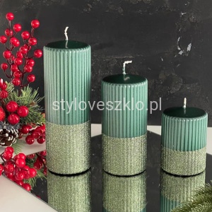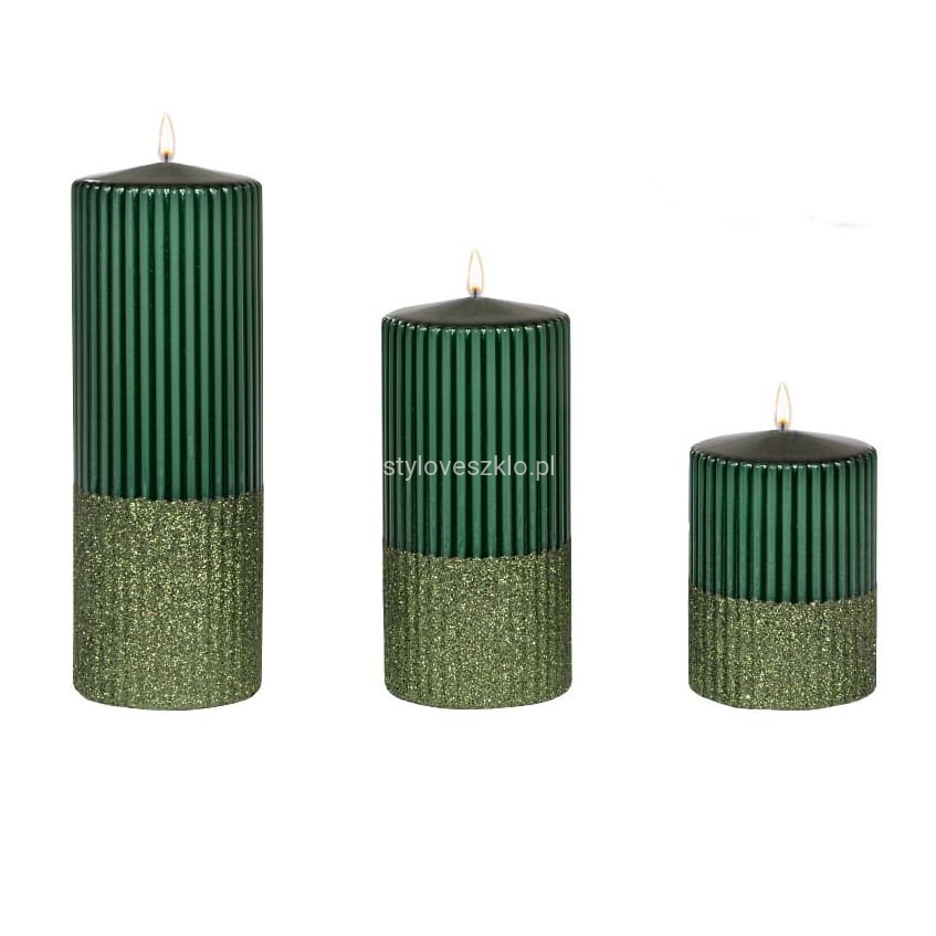 Świeca Ozdobna Pieńkowa Rylen Brokat Metalik 15cm Ciemnozielony