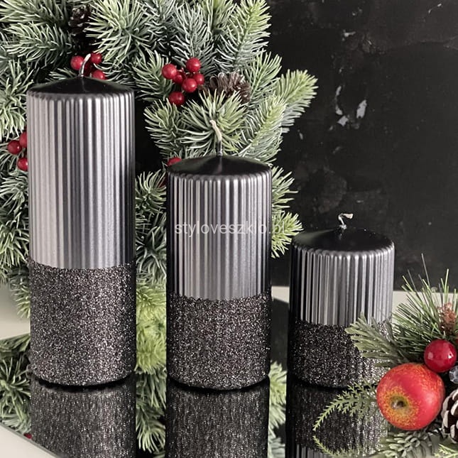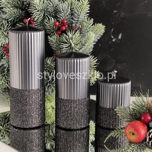 Świeca Ozdobna Pieńkowa Rylen Brokat Metalik 15cm Czarny