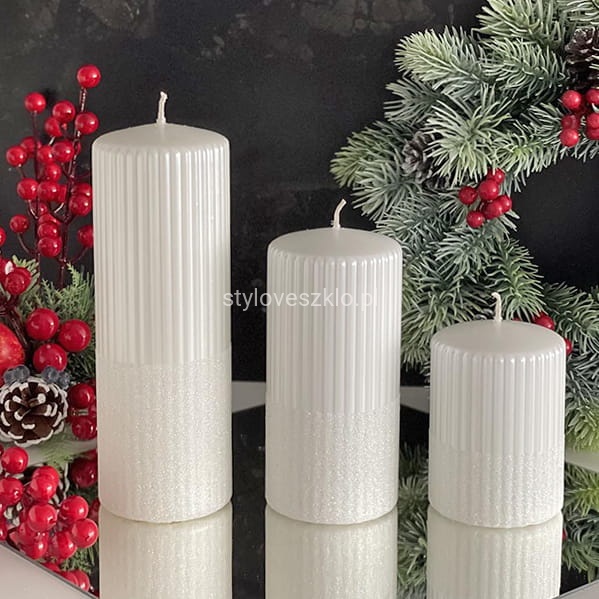 Świece ozdobne Rylen to świece metaliczne z dodatkiem brokatu o strukturze ryflowanej. Mają niewielką średnicę 7cm i mieszczą się w standardowych świecznikach, jak i nowoczesnych lampionach. Dzięki temu nie będziemy mieli problemu z ich doborem, aby uświetnić aranżację naszej sali restauracyjnej, hotelowej recepcji, czy kawiarnianego stolika. Świece ozdobne adwentowe to klasyczne i ponadczasowe rozwiązanie dla naszego biznesu.