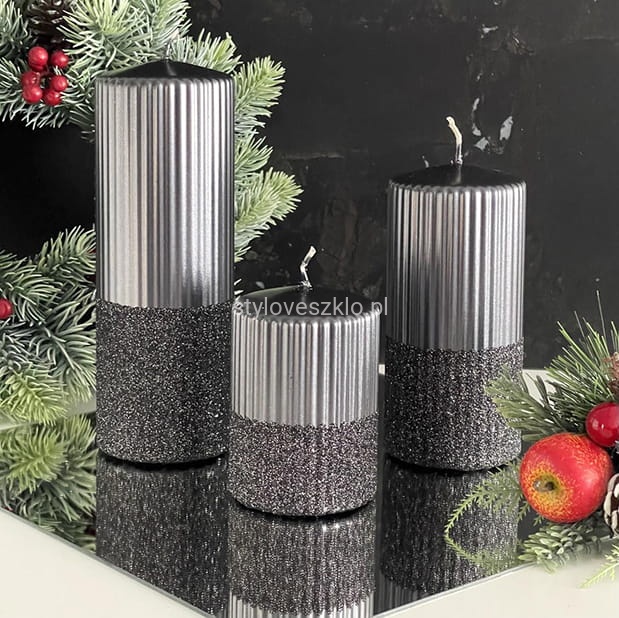 Świeca Ozdobna Pieńkowa Rylen Brokat Metalik 20cm Czarny