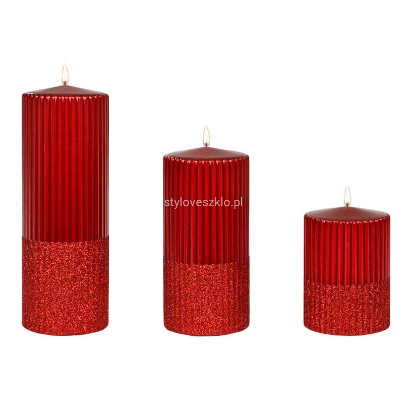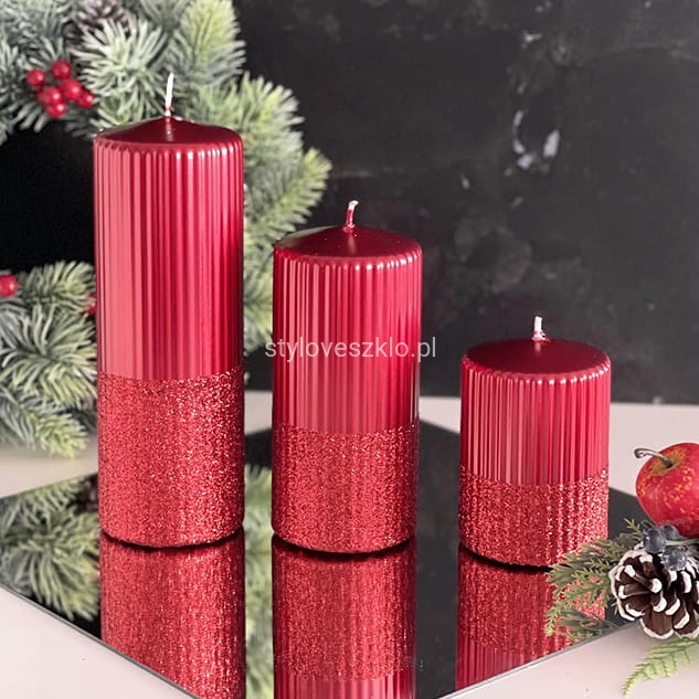 Świeca Ozdobna Pieńkowa Rylen Brokat Metalik 20cm Czerwony