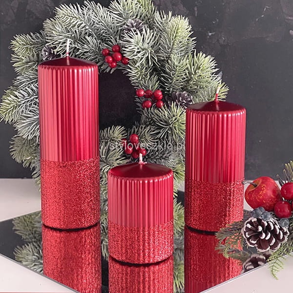 Świece ozdobne Rylen to świece metaliczne z dodatkiem brokatu o strukturze ryflowanej. Mają niewielką średnicę 7cm i mieszczą się w standardowych świecznikach, jak i nowoczesnych lampionach. Dzięki temu nie będziemy mieli problemu z ich doborem, aby uświetnić aranżację naszej sali restauracyjnej, hotelowej recepcji, czy kawiarnianego stolika. Świece ozdobne adwentowe to klasyczne i ponadczasowe rozwiązanie dla naszego biznesu.