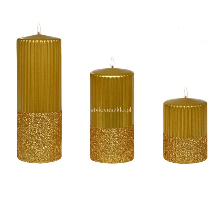Świeca Ozdobna Pieńkowa Rylen Brokat Metalik 20cm Złoty