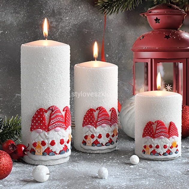 Świeca Ozdobna Pieńkowa Świąteczne Gnomy 14 cm