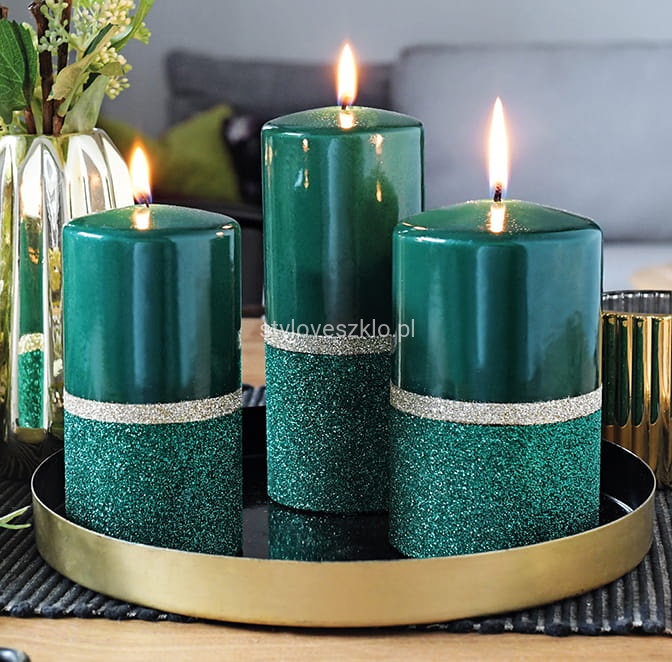Świeca bezzapachowa, pieńkowa Volare to świeca gładka o pięknym połączeniu lakierowanego połysku z lśniącym delikatnie brokatem. Świeca, która zwróci uwagę na każdym eleganckim stole. Przepiękne kolory do wyboru dodadzą z pewnością dodadzą przytulnego świątecznego klimatu. W salonie, sypialni, czy podczas przyjęcia – świece ozdobne sprawdzą się w każdej z tych aranżacji. W połączeniu z dostępnymi w naszym sklepie szklanymi lampionami oraz dekoracyjnym piaskiem, stworzy prostą, ale zarazem bardzo ubogacającą wnętrze dekorację.